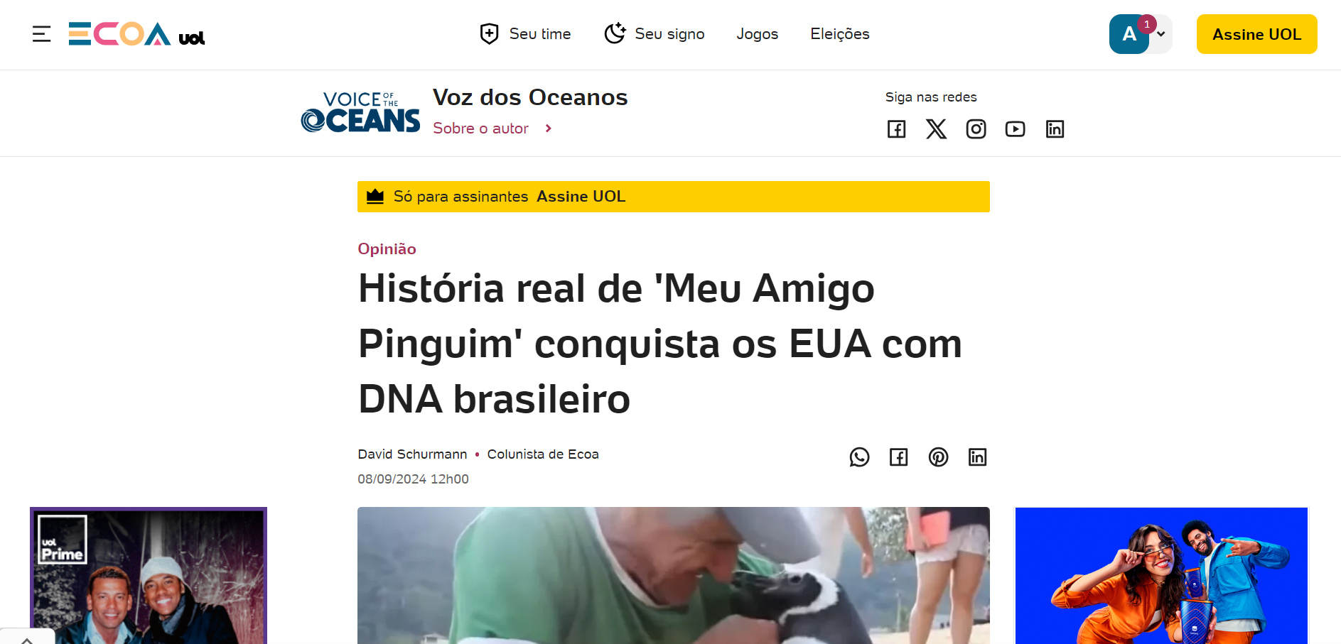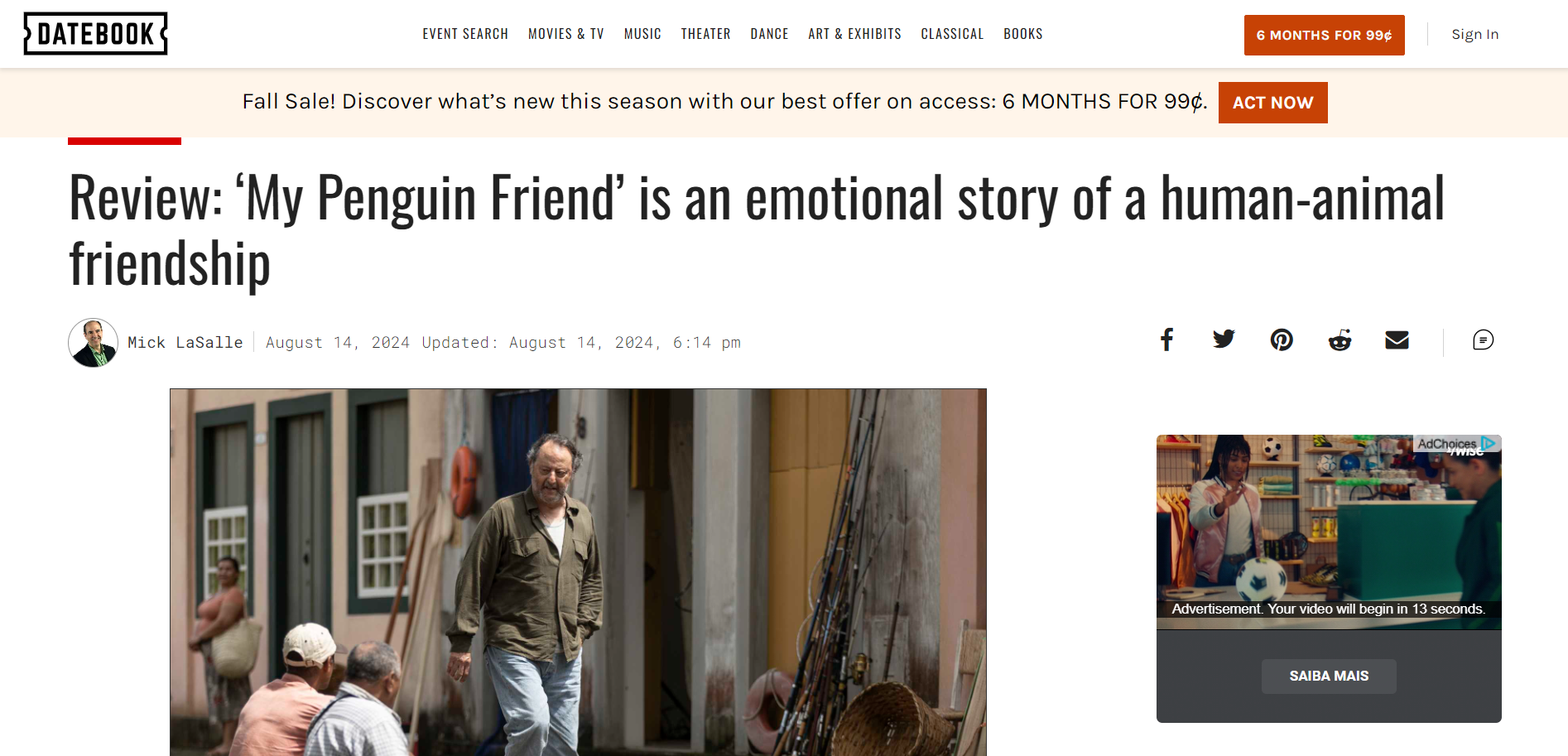 ‘Meu Amigo Pinguim’, com estreia dia 12 de setembro nos cinemas brasileiros, mas já sendo disponibilizado em mais de 300 salas de cinema nos EUA, é o resultado do primeiro Production Service realizado pelo Ventre Studio, um braço de nossa empresa que é gerido principalmente por Justine Otondo, sócia fundadora com vasta experiência, tendo trabalhado com nomes como Walter Salles, Carlos Saldanha, Hector Babenco, entre outros. A produção do longa é da City Hill Arts.